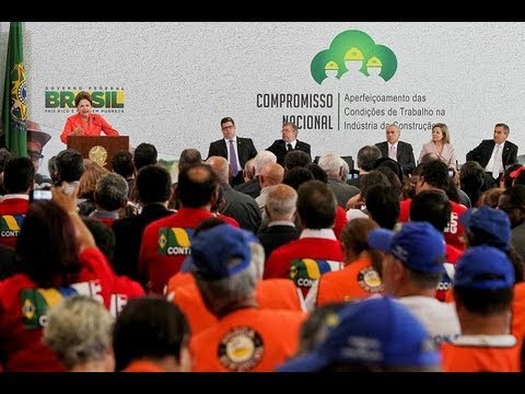 Governo, trabalhadores e empresários assinaram hoje (1º), em cerimônia no Palácio do Planalto, o Compromisso Nacional para Aperfeiçoar as Condições de Trabalho na Indústria da Construção. O documento estabelece condições de trabalho, saúde e segurança nas obras, e prevê a negociação coletiva para definição do piso salarial, benefícios, jornada, transporte, alojamento e alimentação. A presidenta Dilma Rousseff também assinou o decreto que cria a Mesa Nacional Permanente, que deverá acompanhar e avaliar o cumprimento dos termos do acordo.